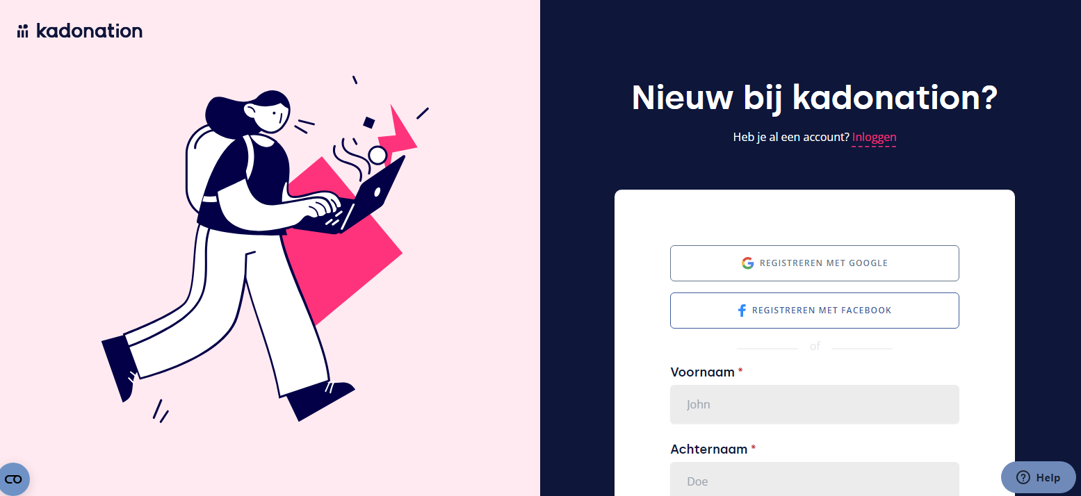 Om de Kadonation cadeaubon te gebruiken, dien je eerst een account aan te maken via https://app.kadonation.com/nl/account/create