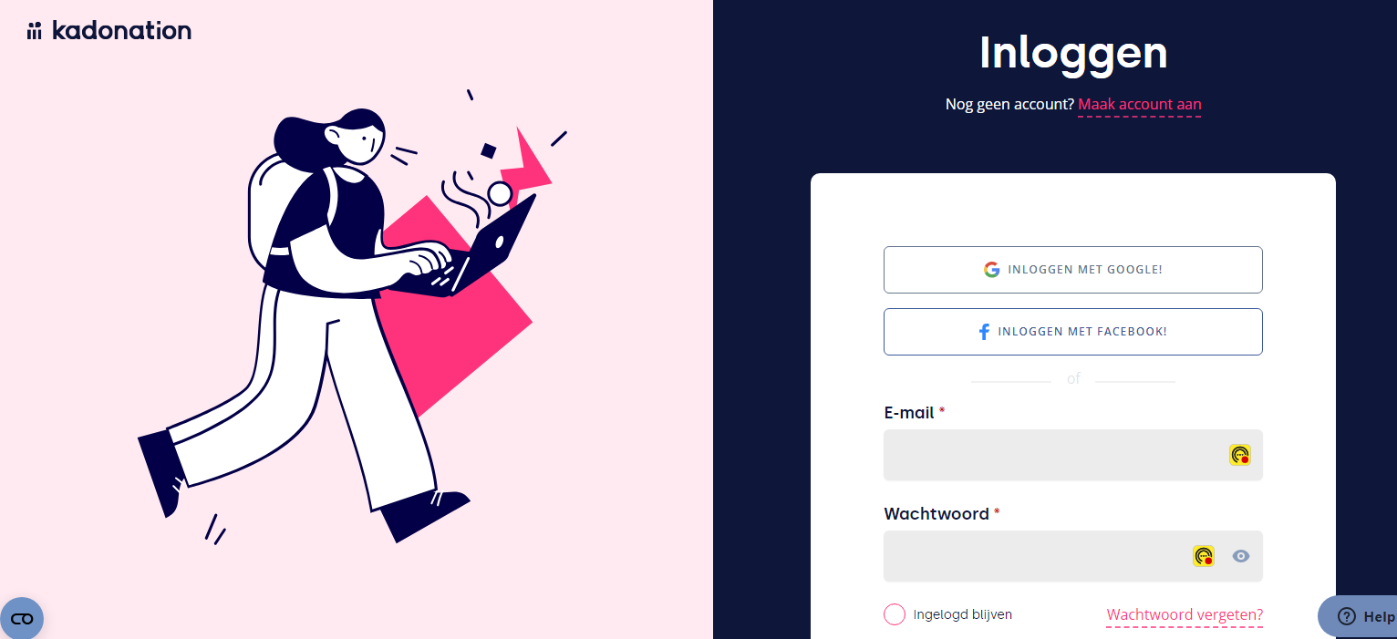 Vervolgens kan je inloggen op https://app.kadonation.com/nl/account/login