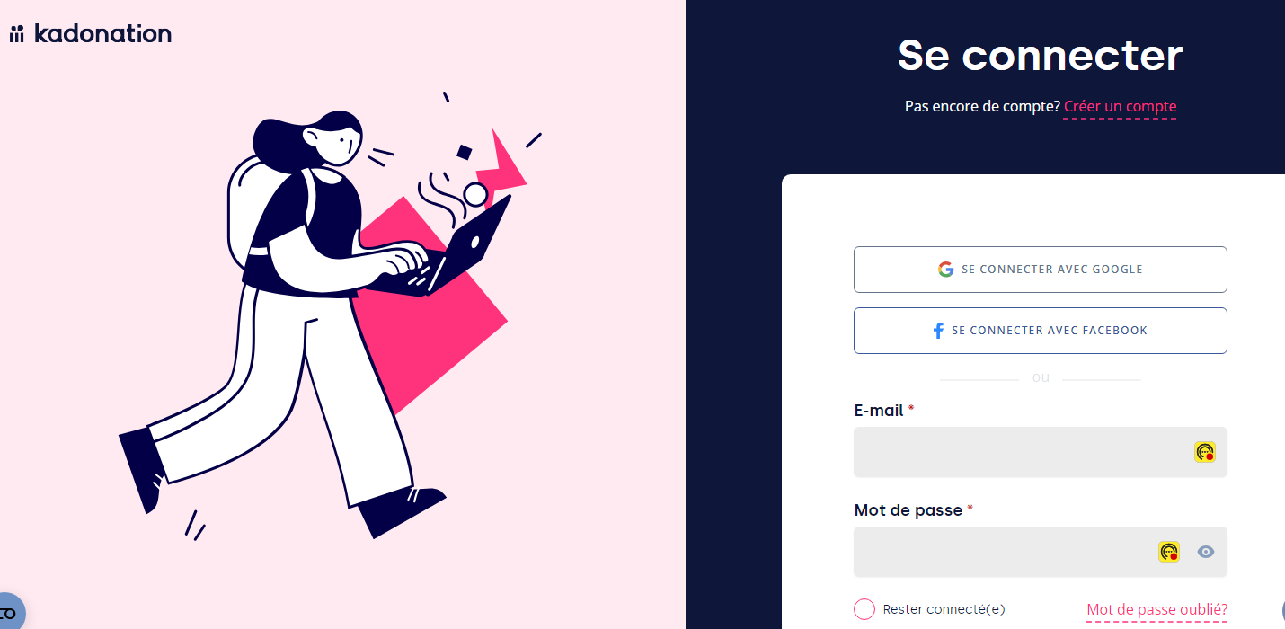 Après avoir créé un compte, vous pouvez échanger le chèque-cadeau Kadonation en vous connectant sur https://app.kadonation.com/fr/account/login