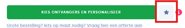 Vaak hetzelfde geschenk bestellen? Wist je dat je elk geschenk als favoriet kan instellen? Dat doe je door op de geschenkpagina het ster-icoon aan te klikken naast de groene button waarmee je geschenken bestelt.